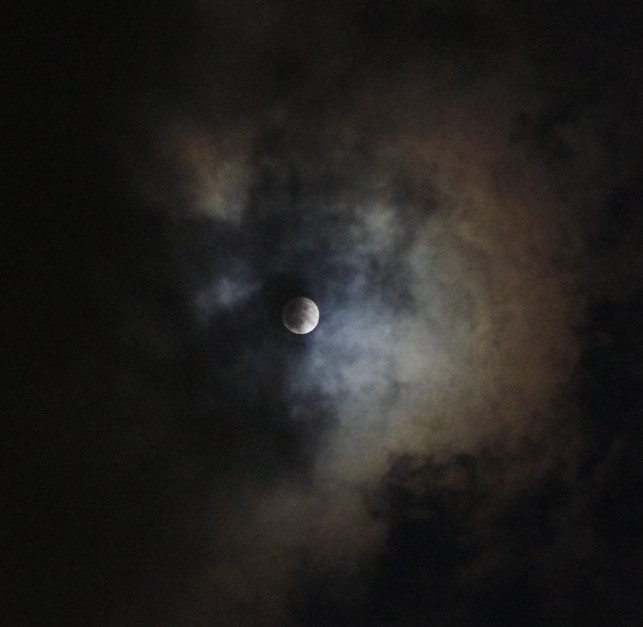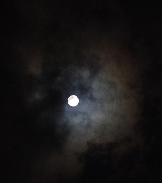 きれいに見えていた月が雲に覆われておぼろ月になってしまいました。