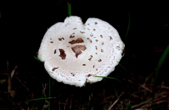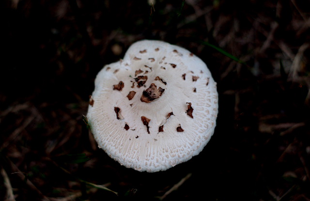近所の空き地にいかにも毒のありそうな白いキノコが生えていました。